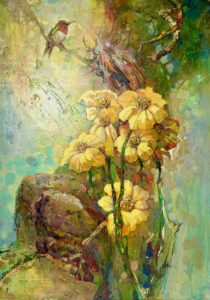 Art Name: “Rudy Throated Hummingbird Treasure” 30 x 40 Canvas